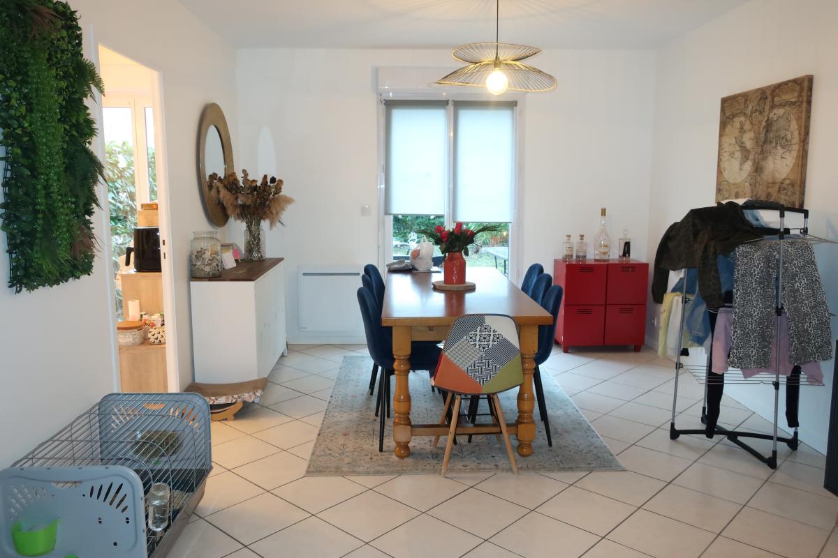 Dans un lotissement au calme, maison jumelée comprenant au rdc: pièce principale, cuisine séparée, wc. A l'étage: trois chambres, salle de bains avec wc.