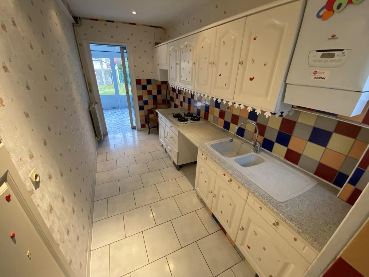 MERVILLE FRANCEVILLE PLAGE, maison de 130m² environ comprenant, entrée, salon/séjour (26m²), deux cuisines, chambre avec placards, salle d'eau avec wc, véranda avec poêle à granulés (23m²). A l'étage, salle de bains, deux chambres. Dépendances, jardin, terrain de 404m².