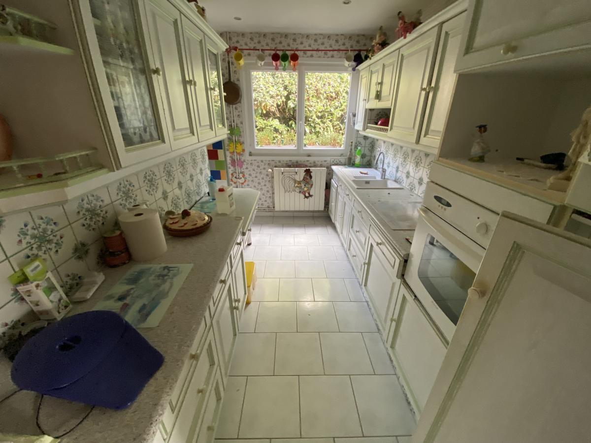 MERVILLE FRANCEVILLE PLAGE, maison de 130m² environ comprenant, entrée, salon/séjour (26m²), deux cuisines, chambre avec placards, salle d'eau avec wc, véranda avec poêle à granulés (23m²). A l'étage, salle de bains, deux chambres. Dépendances, jardin, terrain de 404m².