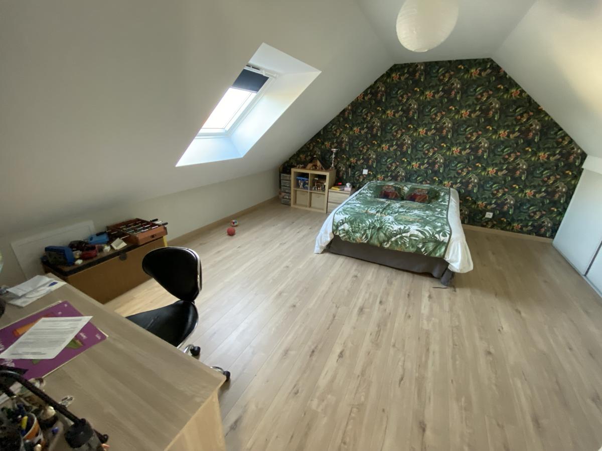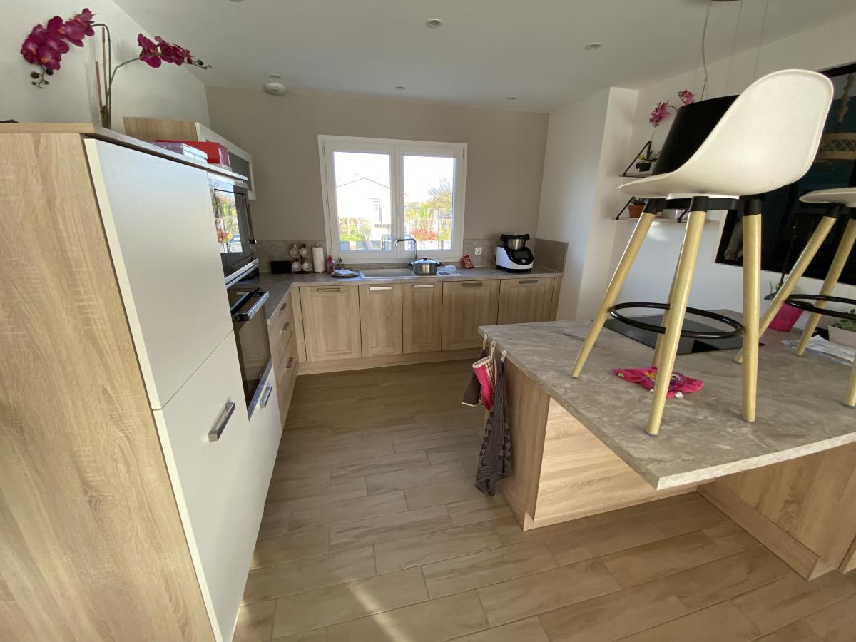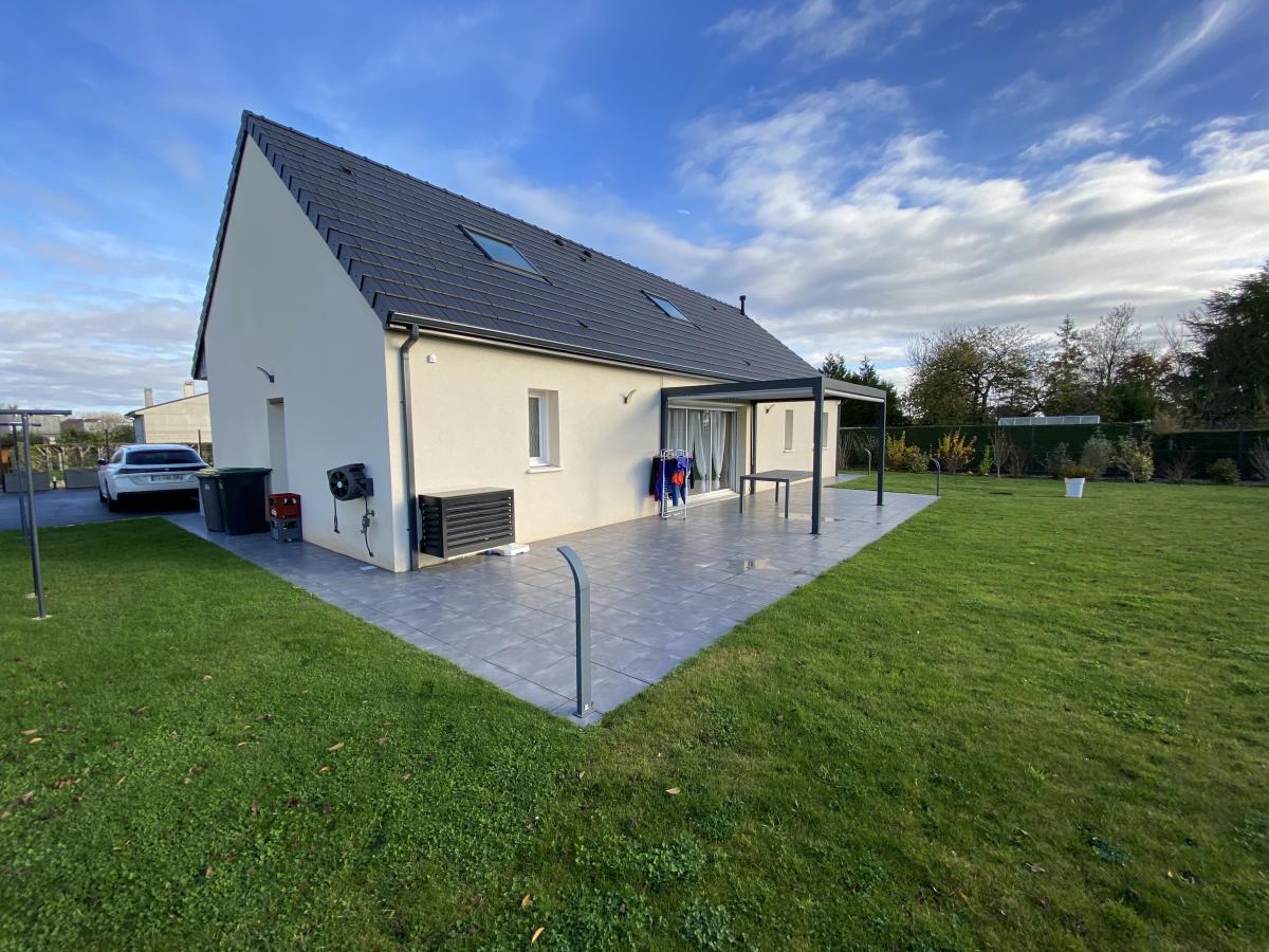 Maison de 2019, aucun travaux, comprenant, entrée, séjour/salon (38m²) ouvert sur cuisine équipée et aménagée, deux chambres, salle d'eau, buanderie , garage. A l'étage, palier, 3 chambres, salle de bains, wc. Terrasse plein sud, cour bitumée, terrain de 1056m².